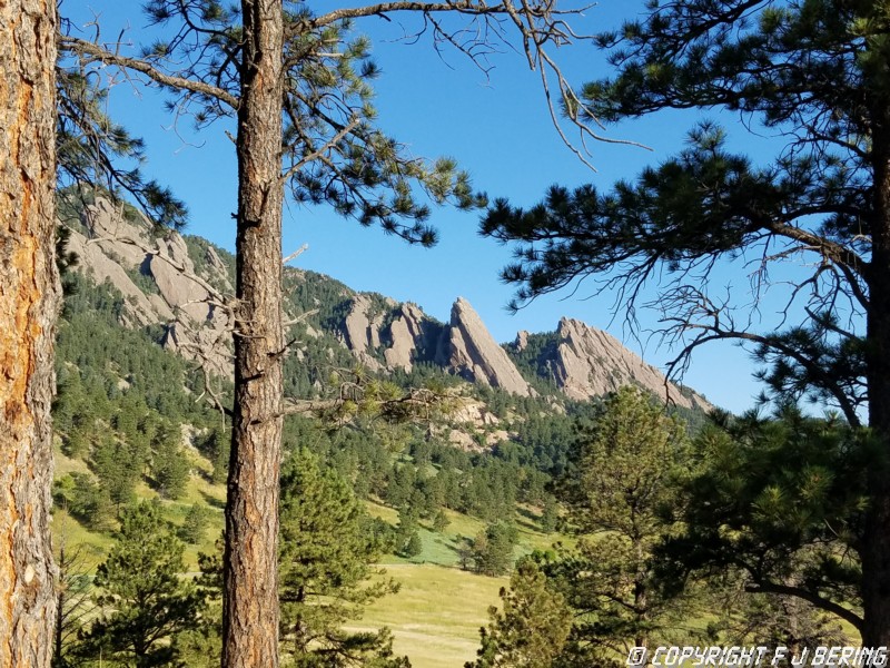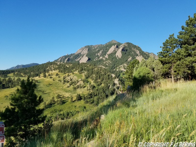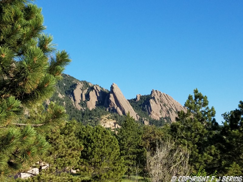 Table Mesa sits against the foothills of the Rocky Mountains in the south end of Boulder. It rises high above the surrounding areas and is surrounded on each side by the iconic Flatirons rock formations. Atop the mesa sits the Mesa Laboratory of the National Center for Atmospheric Research. Trails on the mesa give excellent views of the natural surroundings; these lead to to trails into the foothills of the Rockies to the west. To the east you can look out onto the plains of Colorado. On a clear day you can see for miles out onto the open plains – see the 4th picture in the gallery below for a feeling of the view.